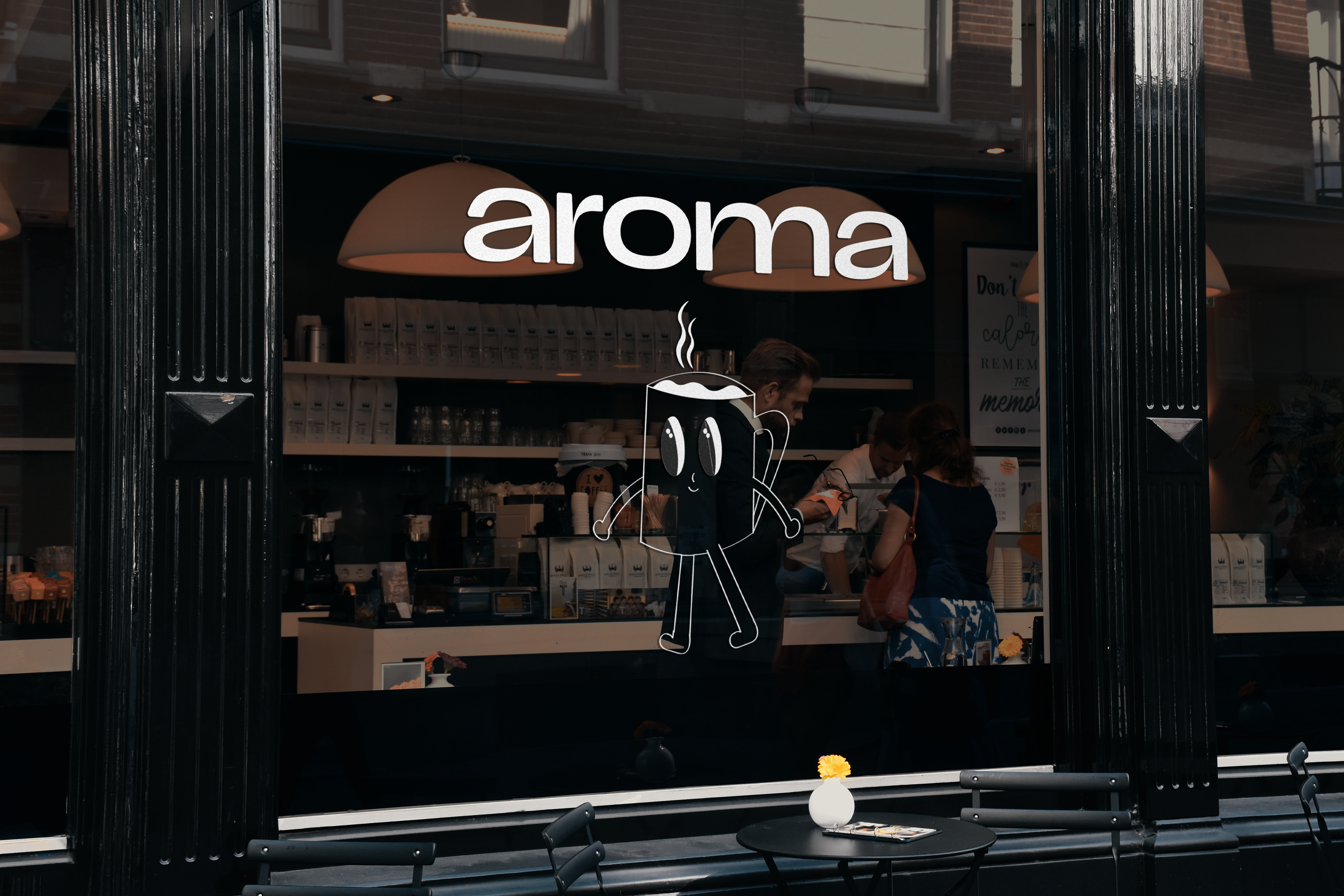 Aroma es una cafetería pensada para quienes aprecian el buen café y buscan un ambiente familiar. La identidad combina formas amables y un lenguaje visual orgánico para construir una experiencia envolvente y recordable.